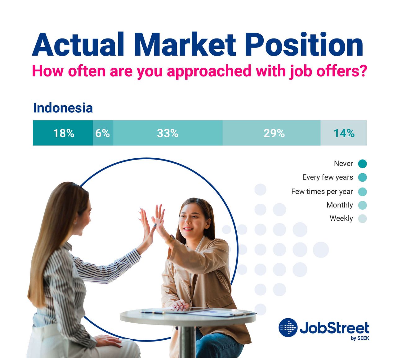 Employers by now should accept it’s an employees’ market. The figures are sobering - 75% of jobseekers are approached with job opportunities multiple times a year, in Indonesia, 29% of them are approached on a monthly basis.