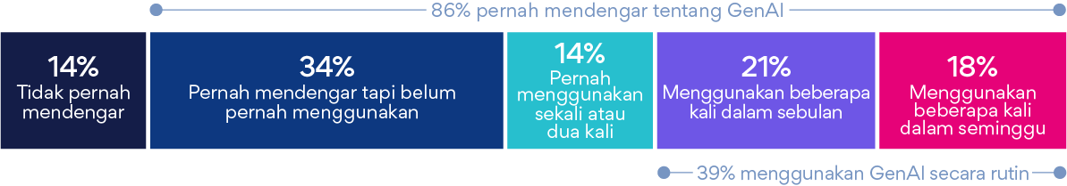 Sebagian besar pekerja (86%) mengatakan bahwa mereka pernah mendengar tentang GenAI.