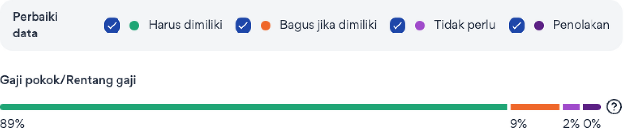 Persentase individual yang Anda lihat menunjukkan bagaimana kandidat dalam pencarian Anda telah memberi peringkat pada setiap faktor pendorong berdasarkan empat tingkat kepentingan: