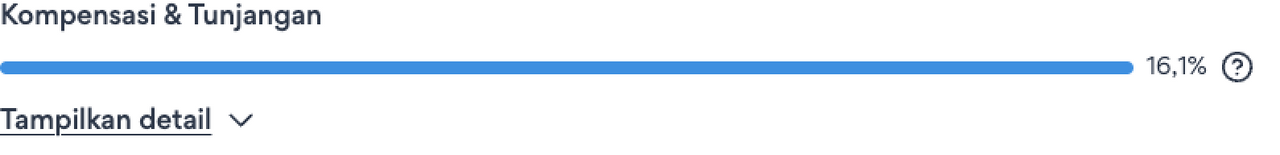 Persentase pertama, tampilan di sebelah garis biru mewakili setiap faktor pendorong ketertarikan, yaitu skor kepentingan. Semua faktor pendorong bisa jadi ‘penting’, skor relatif di dalamnya membantu Anda memahami prioritas faktor pendorong utama yang perlu difokuskan pada iklan lowongan kerja atau wawancara. Angka persentase ini menunjukkan pentingnya faktor pendorong tersebut lebih penting dibandingkan dengan lainnya dan tidak mencerminkan persentase individu. Hal ini bisa dijadikan bentuk dari usaha Anda untuk memilih poin yang tepat dalam menyampaikan informasi terkait posisi yang ditawarkan atau tentang perusahaan Anda kepada kandidat. Sebagai contoh, jika Anda melihat skor kepentingan sebesar 20% pada factor pendorong Gaji & Kompensasi, dan Anda memiliki 100 kata untuk dikomunikasikan kepada kandidat, maka sebaiknya Anda menggunakan setidaknya 20 kata untuk mendeskripsikan tentang gaji dan kompensasi yang ditawarkan.