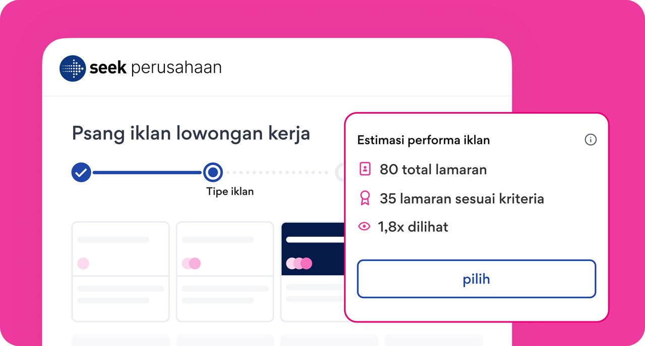 Saat memasang iklan lowongan kerja di SEEK, Anda dapat melihat perkiraan jumlah lamaran berkualitas tinggi yang akan diterima. Pratinjau ini membantu Anda menentukan tingkat investasi dan ekspektasi rekrutmen dengan lebih realistis.