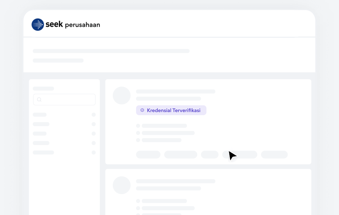 Memilih kandidat tepat kini lebih mudah dan yakin dengan SEEK Pass. Kredensial terverifikasi akan muncul langsung di profil kandidat, sehingga Anda dapat lebih yakin terhadap klaim yang mereka buat. Transparansi ini memastikan Anda hanya fokus pada kandidat dengan kualifikasi yang benar-benar valid, membuat Anda yakin pada setiap tahap rekrutmen.